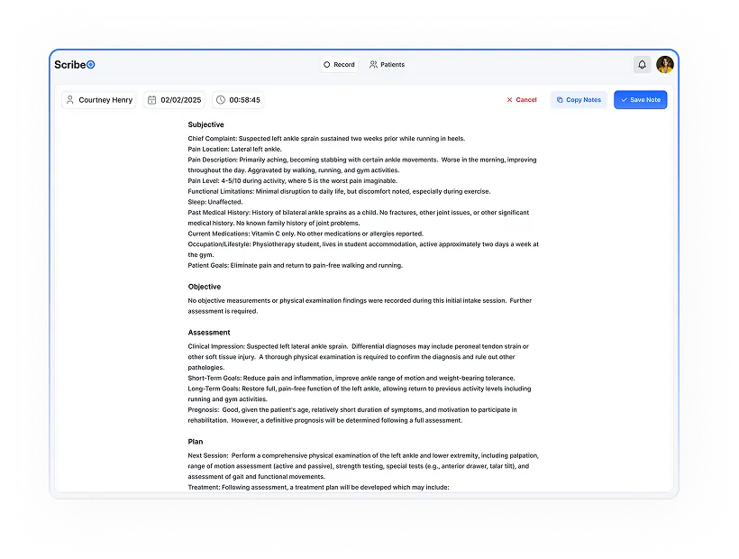 Free yourself from the burden of documentation with an AI-powered solution designed to simplify your workflow, reduce errors, and enhance patient interactions. Our technology ensures fast, accurate, and secure clinical notes-so you can focus on what truly matters: delivering quality car