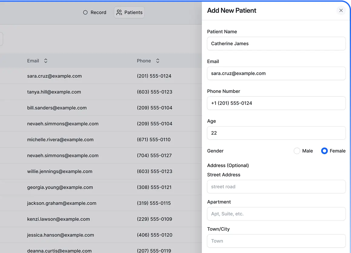 Add new patients in seconds with a single click. Simplify intake processes and eliminate administrative bottlenecks so you can start delivering care faster.